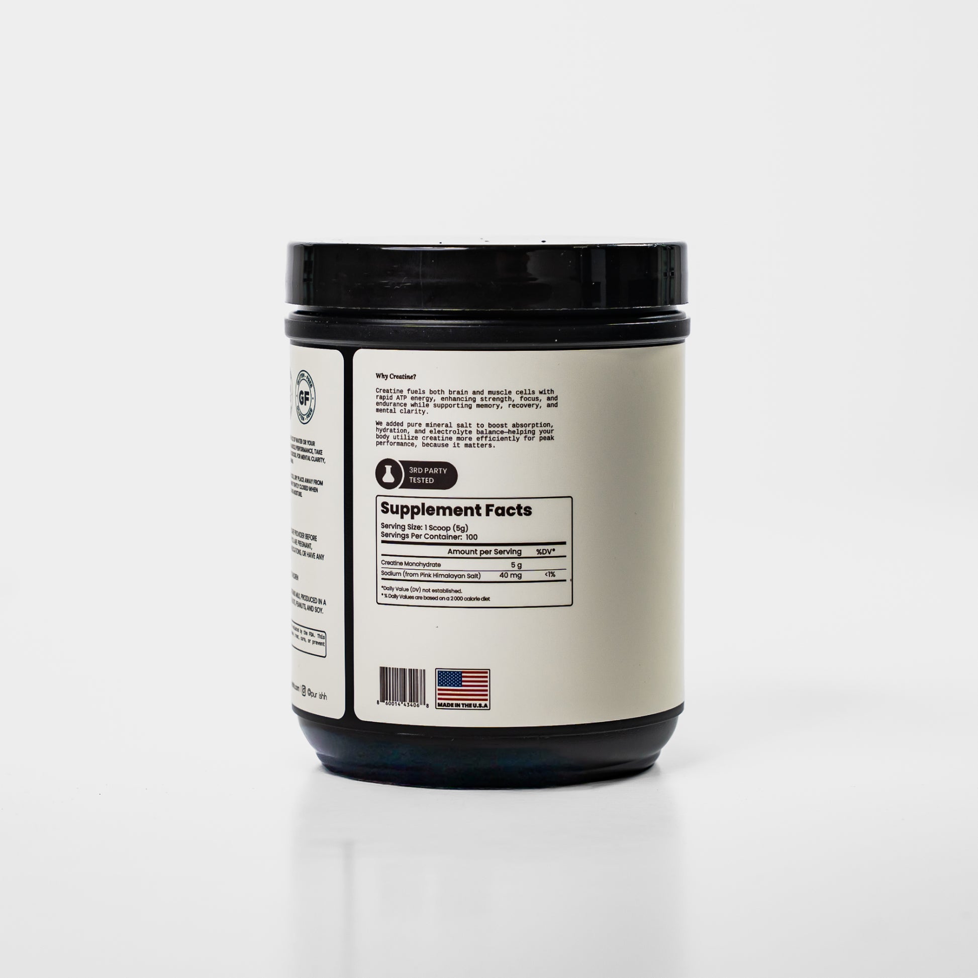 We included unrefined mineral salt to complement hydration and mineral balance alongside creatine.